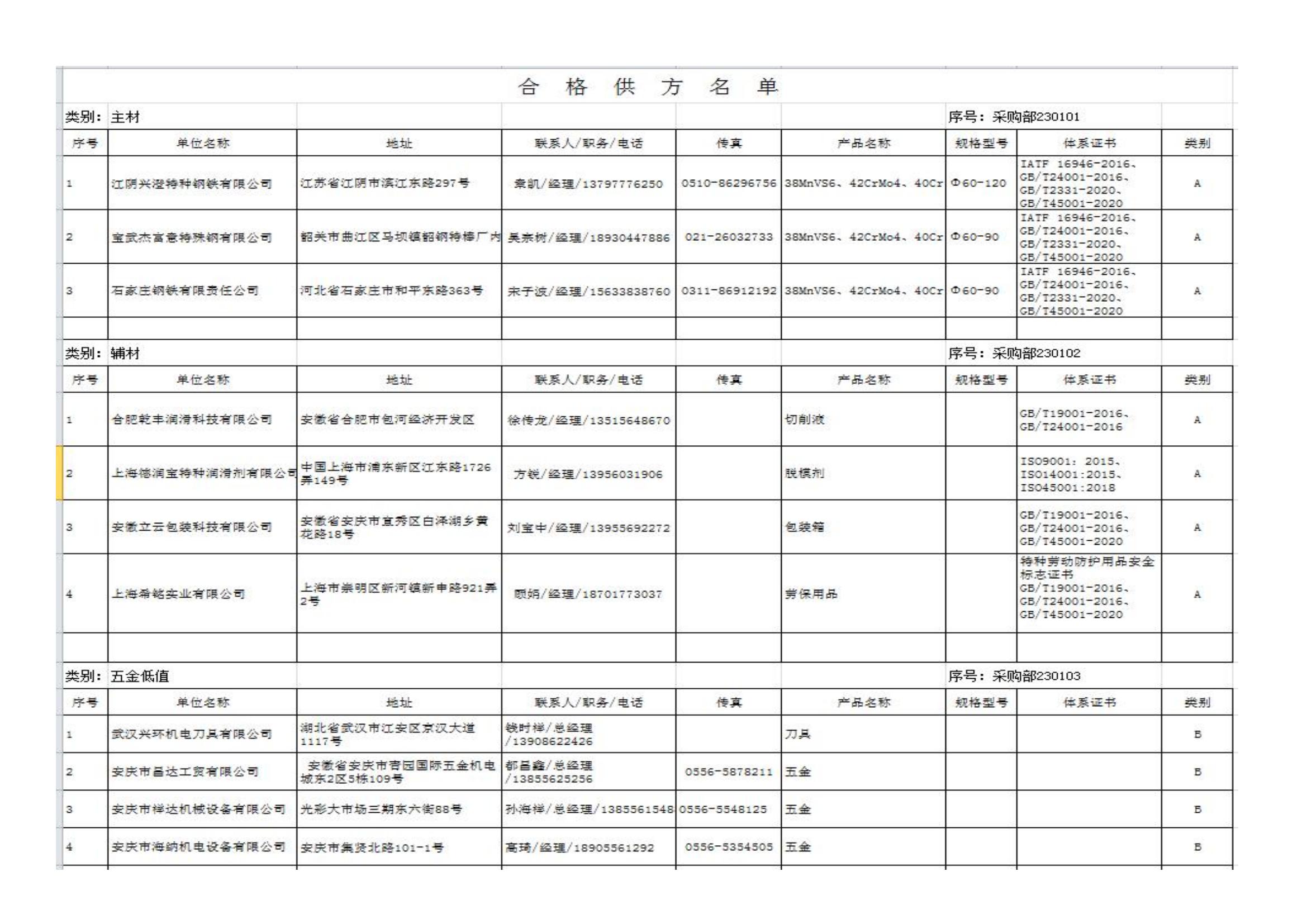 安徽安簧機械股份有限公司披露低風(fēng)險供應(yīng)商名單